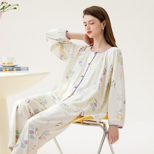 浪漫花卉长袖 柔软舒适开衫 可外穿睡衣 纯棉女士家居服套装 芬腾夏季