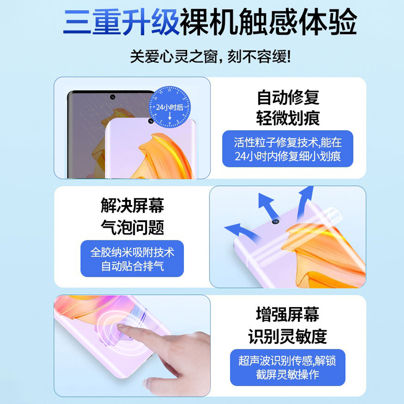 适用荣耀80水凝膜荣耀80pro曲屏版 软膜80gt抗蓝光无白边honor80se防窥por贴膜 手机膜全胶防摔高清80pro直屏版