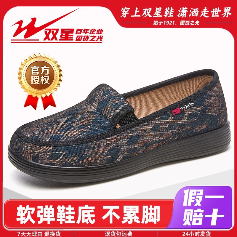 透气单鞋 双星八特老北京布鞋 百搭休闲鞋 一脚蹬平底妈妈鞋 女绣花鞋