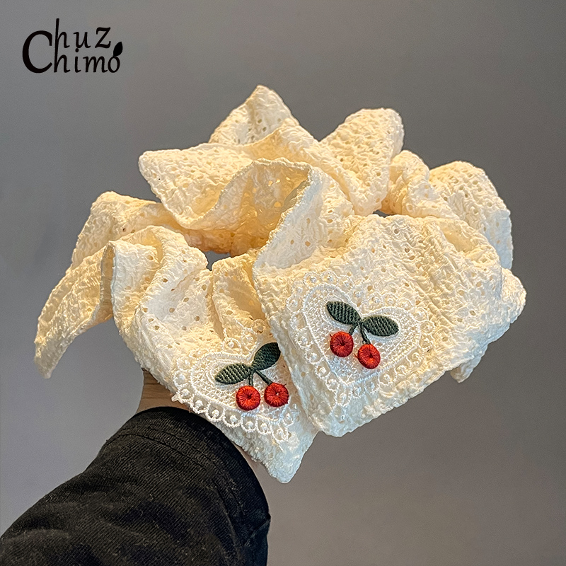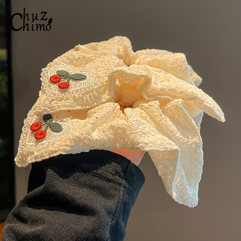 韩国甜美樱桃大肠发圈女气质丸子头方巾大肠圈高弹力发饰马尾发绳