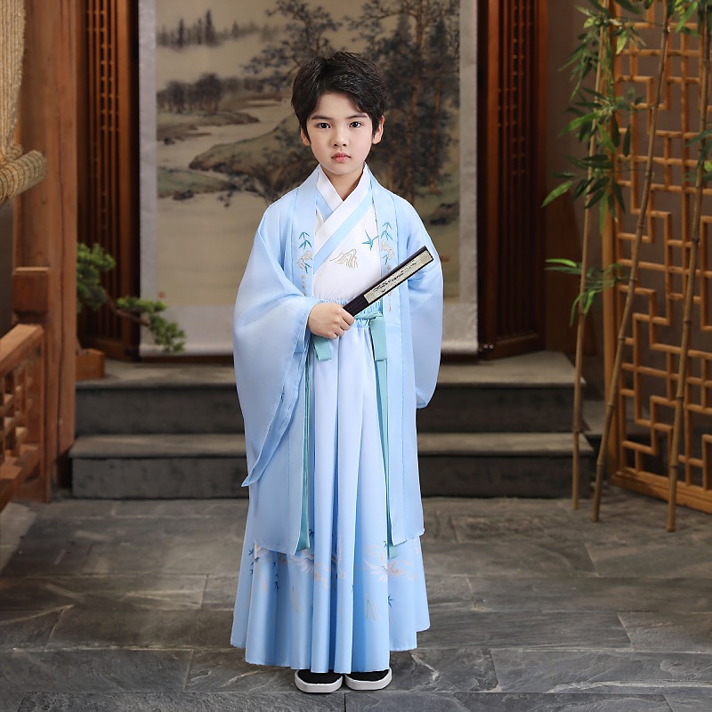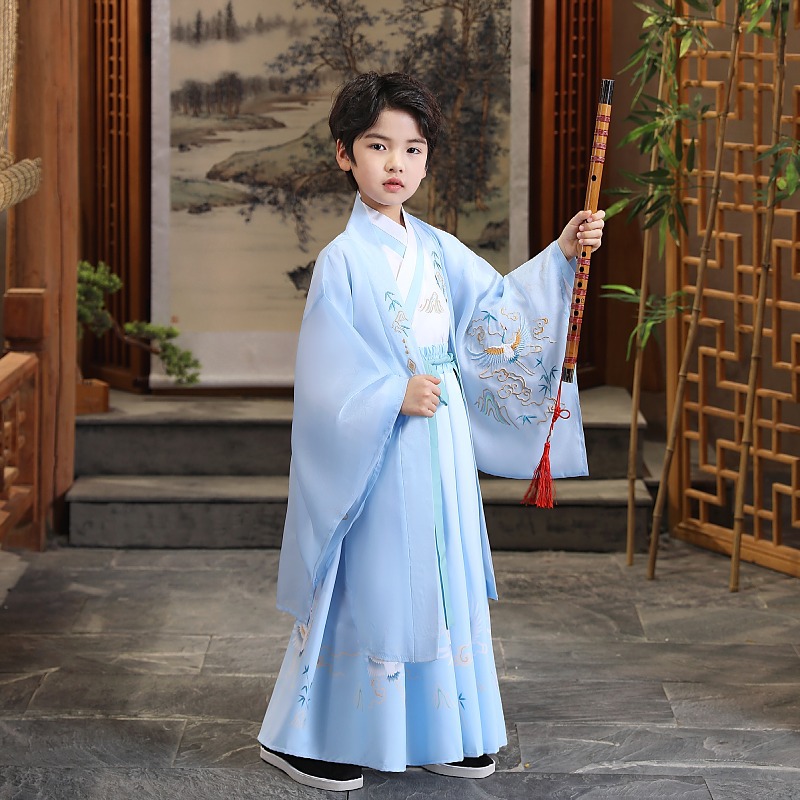 汉服儿童男春秋轻薄古风国学高端公子少爷服大袖 帅气武侠小男孩