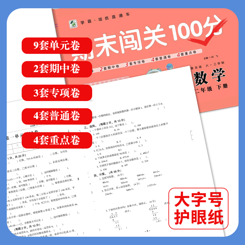卷期中卷专项卷普通卷重点卷 期末闯关100分数学青岛六三学制一年级二年级三年级四年级五年级六年级上册单元 乐双