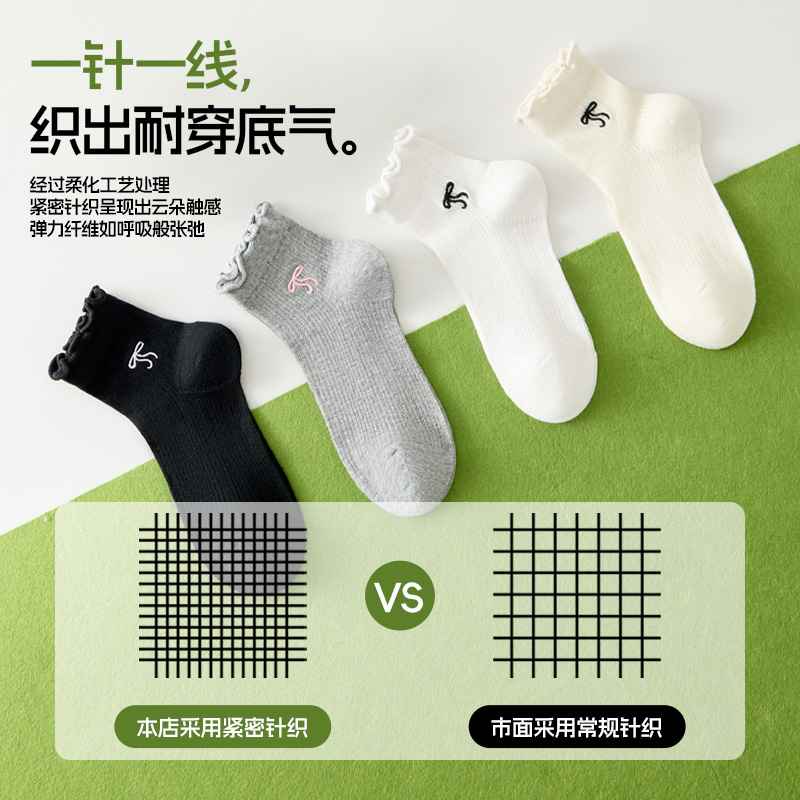 袜子女短袜夏季 木耳边堆堆中筒棉袜网眼蝴蝶结无骨月子长袜FX 薄款