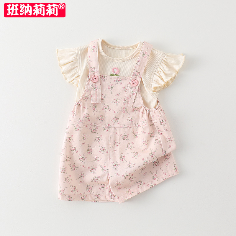 套装 连体衣夏季 2025新款 背带裤 衣服分体两件套 女宝宝短袖 婴儿夏装