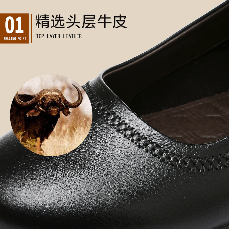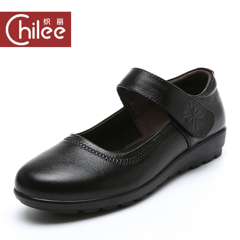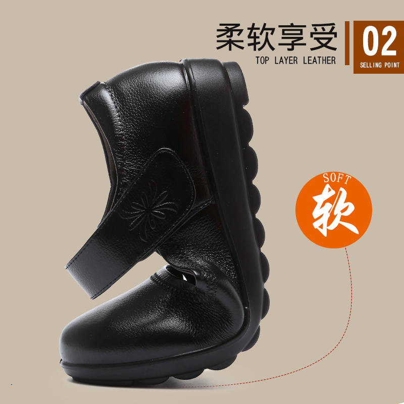 超软中老年大码 老人单鞋 女鞋 春季 魔术贴 防滑皮鞋 真牛皮软底妈妈鞋
