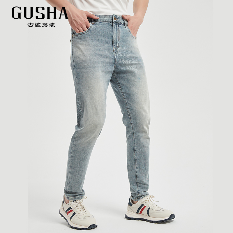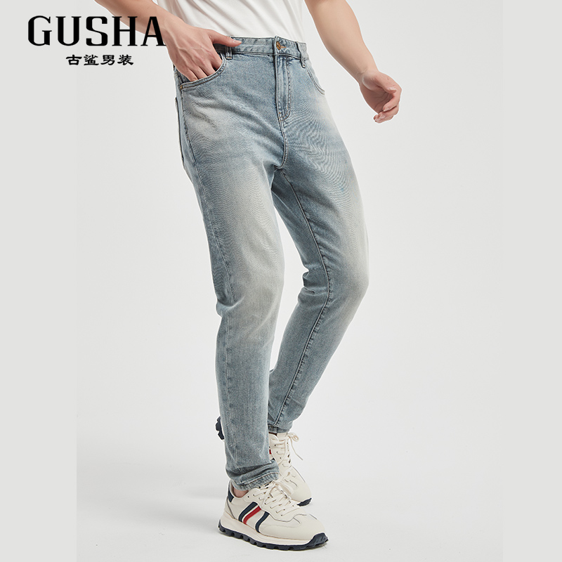 显瘦显高直筒裤 森马牛仔裤 秋季 窄版 子弹力质感 男潮流复古水洗长裤