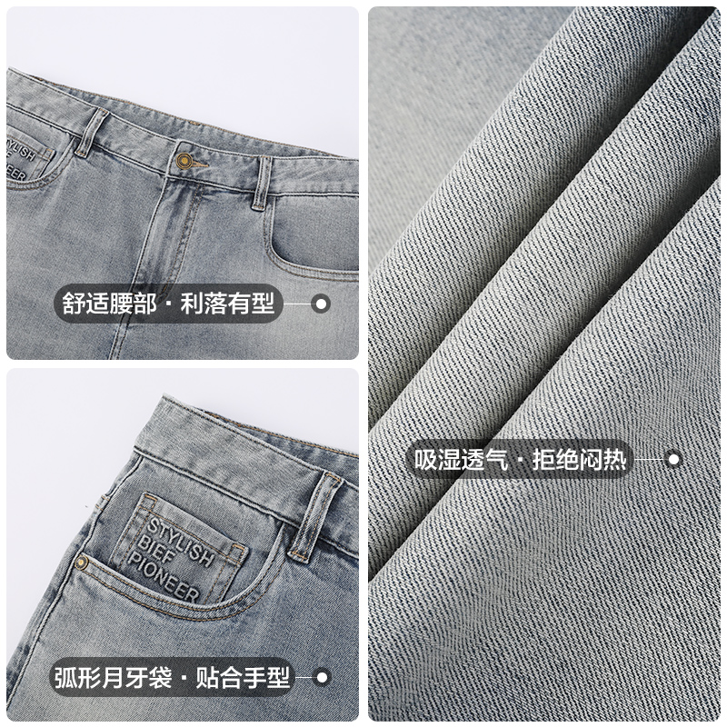 长裤 男宽松直筒阔腿拖地工装 复古水洗做旧竹节棉牛仔裤 JHYQ美式