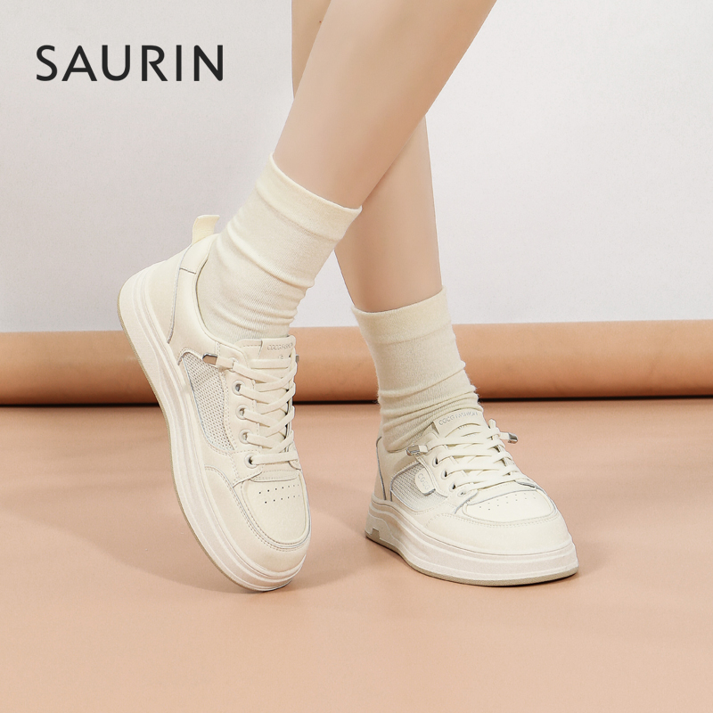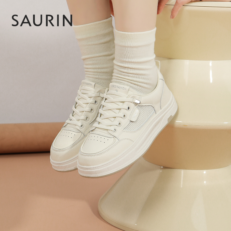 休闲简约免系带平底板鞋 索兰小白鞋 时尚 新款 25AX47245 女2025春季