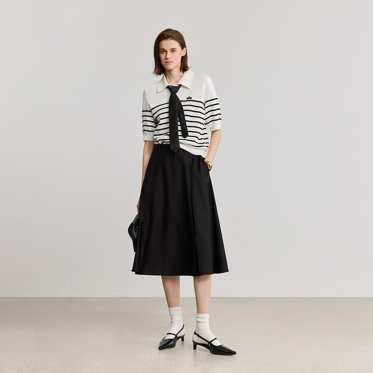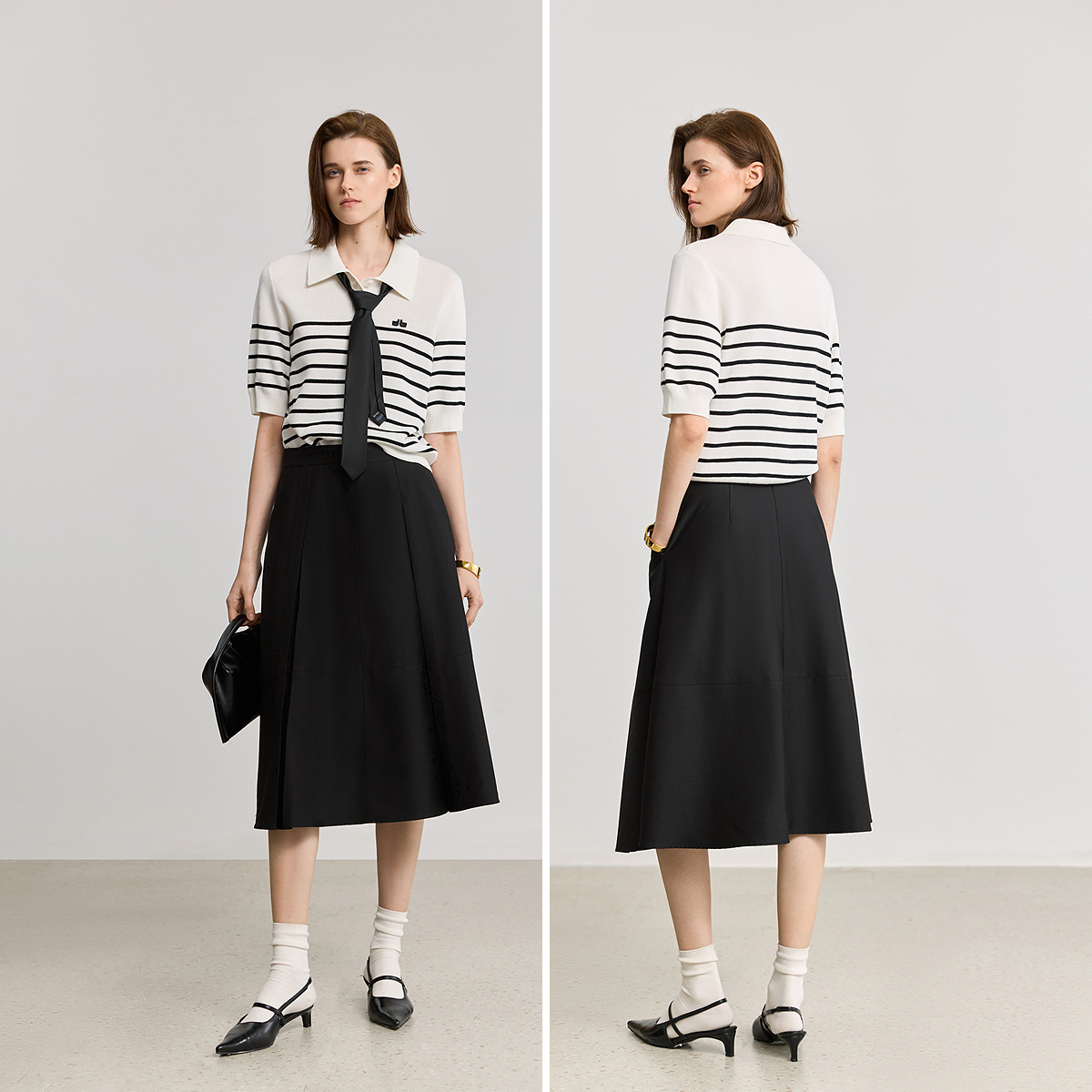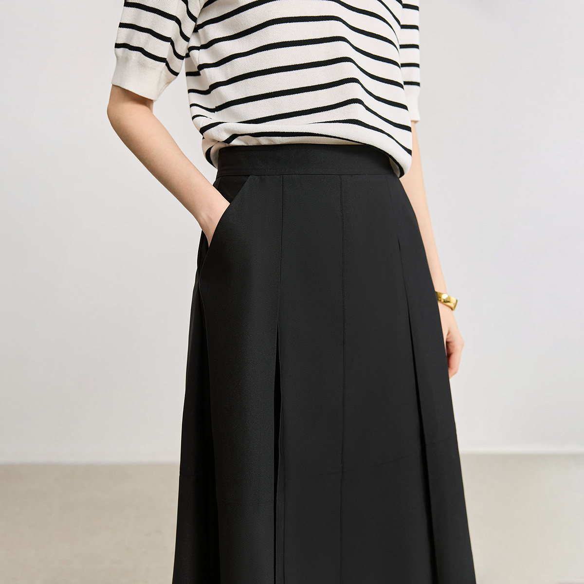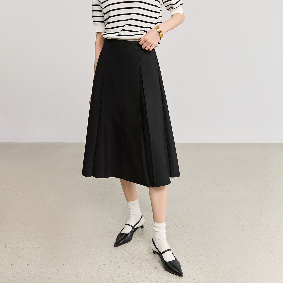 LILY2025新款 简约垂感休闲百搭职业通勤黑色A字半身裙女中长款