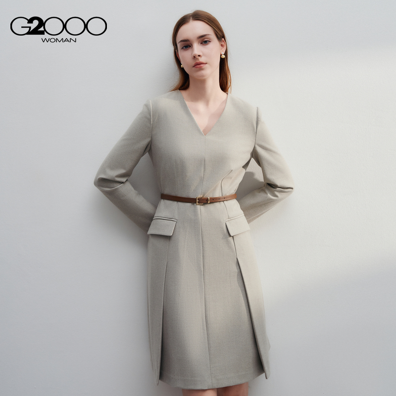A3FAF3263 太平鸟莱赛尔绵羊毛混纺针织连衣裙女长袖 商场同款