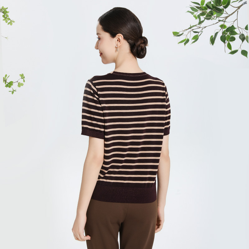 2025夏装 正品 新款 宽松大码 天丝小衫 赏心岁月中年妈妈条纹t恤衫
