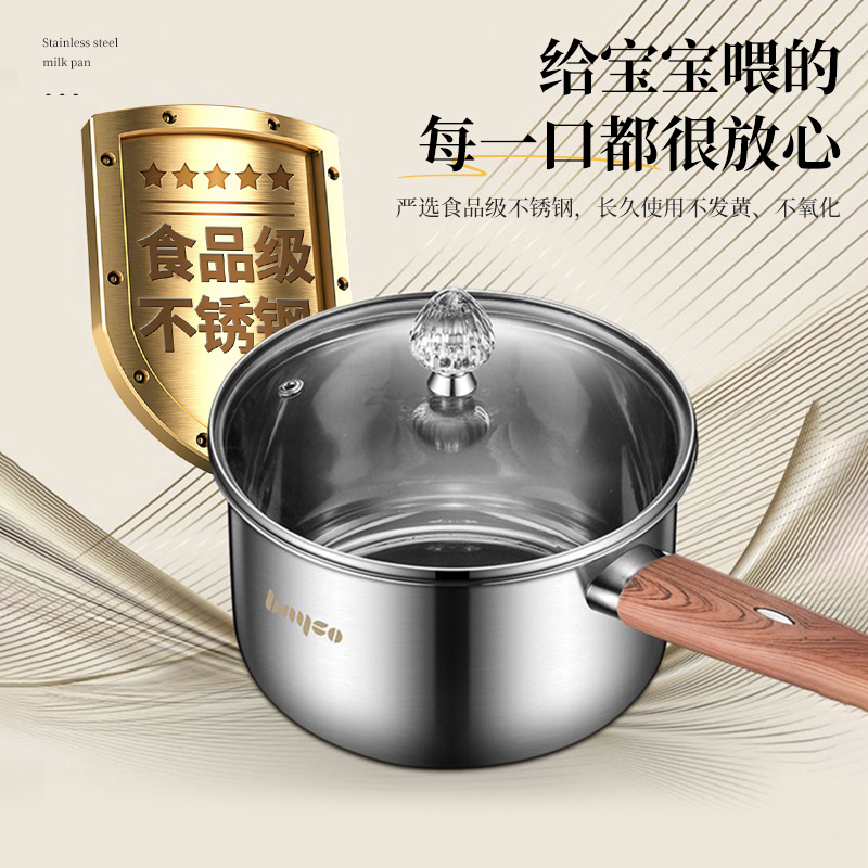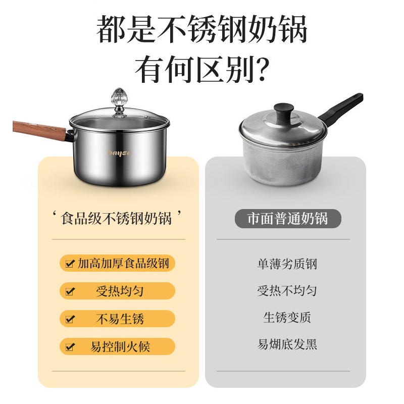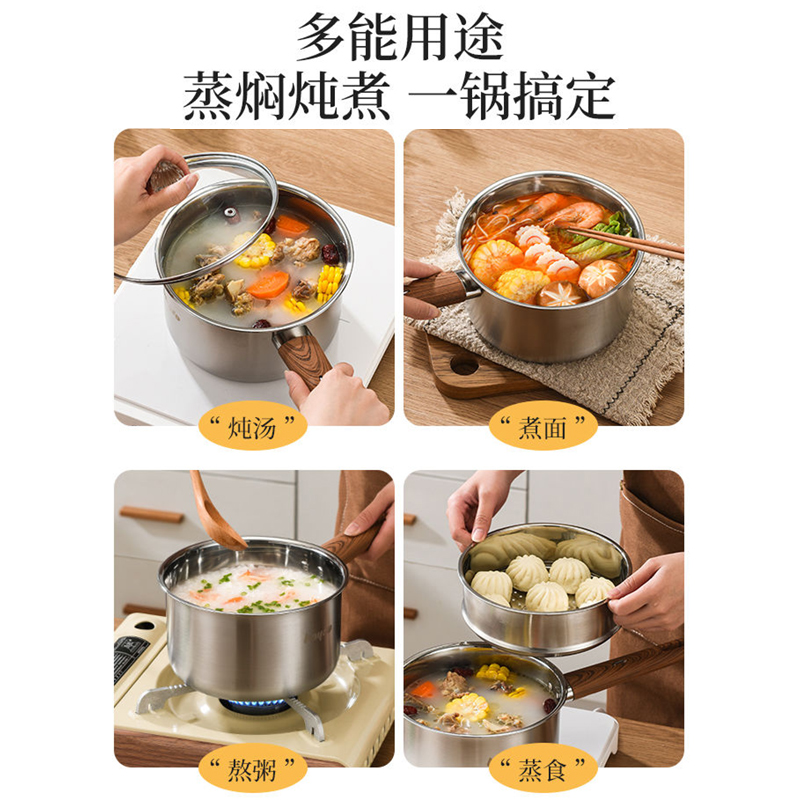 拜格不锈钢奶锅不粘锅无涂层家用汤锅蒸煮一体宝宝婴儿辅食锅