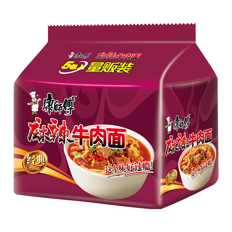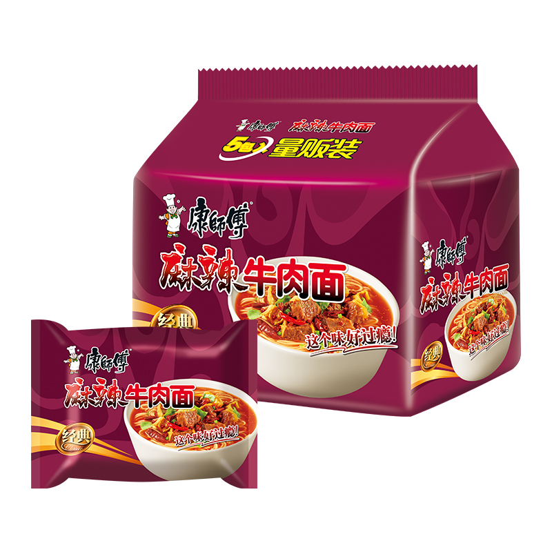 康师傅方便面经典 麻辣牛肉面五连包泡面速食面解馋夜宵旗舰店官网