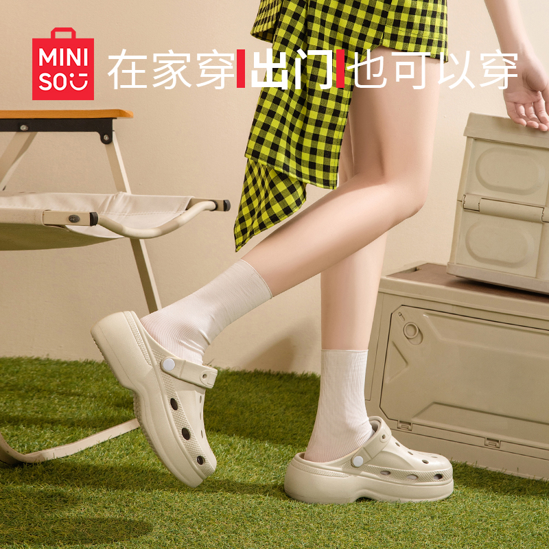 穿福袋 MINISO名创优品沙滩线条小狗大眼睛防晒洞洞鞋 限时特价