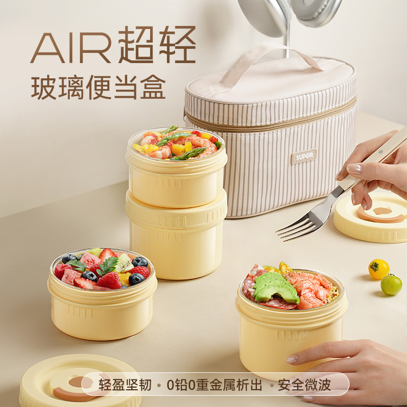 苏泊尔玻璃便当饭盒微波炉加热专用上班族带餐盒打饭桶成人大容量