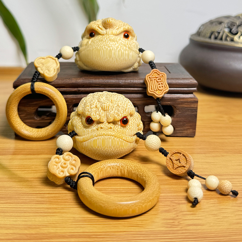 竹雕金蟾实心竹蛤蟆手把件龙血竹把玩件根雕蟾蜍文玩根雕三足金蟾