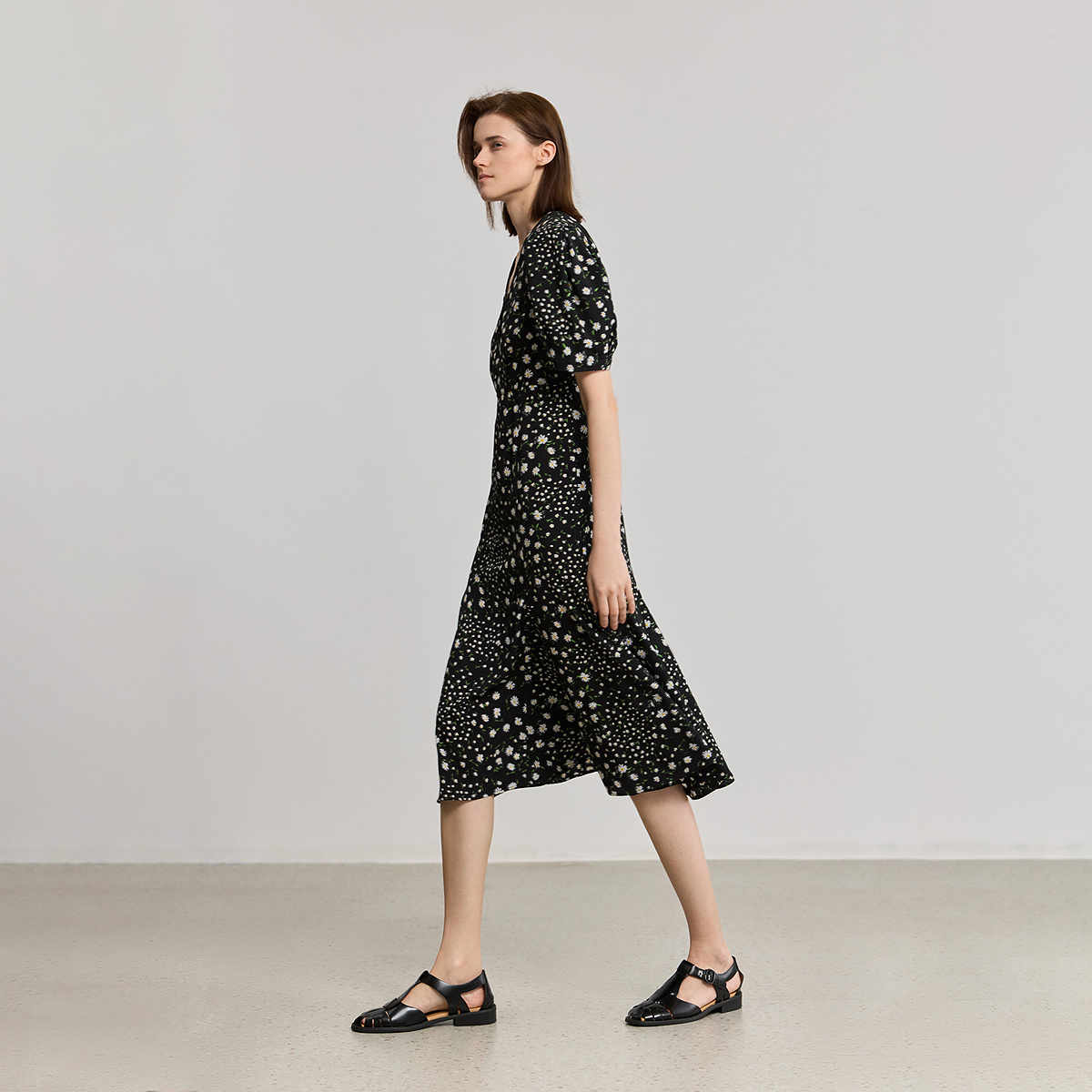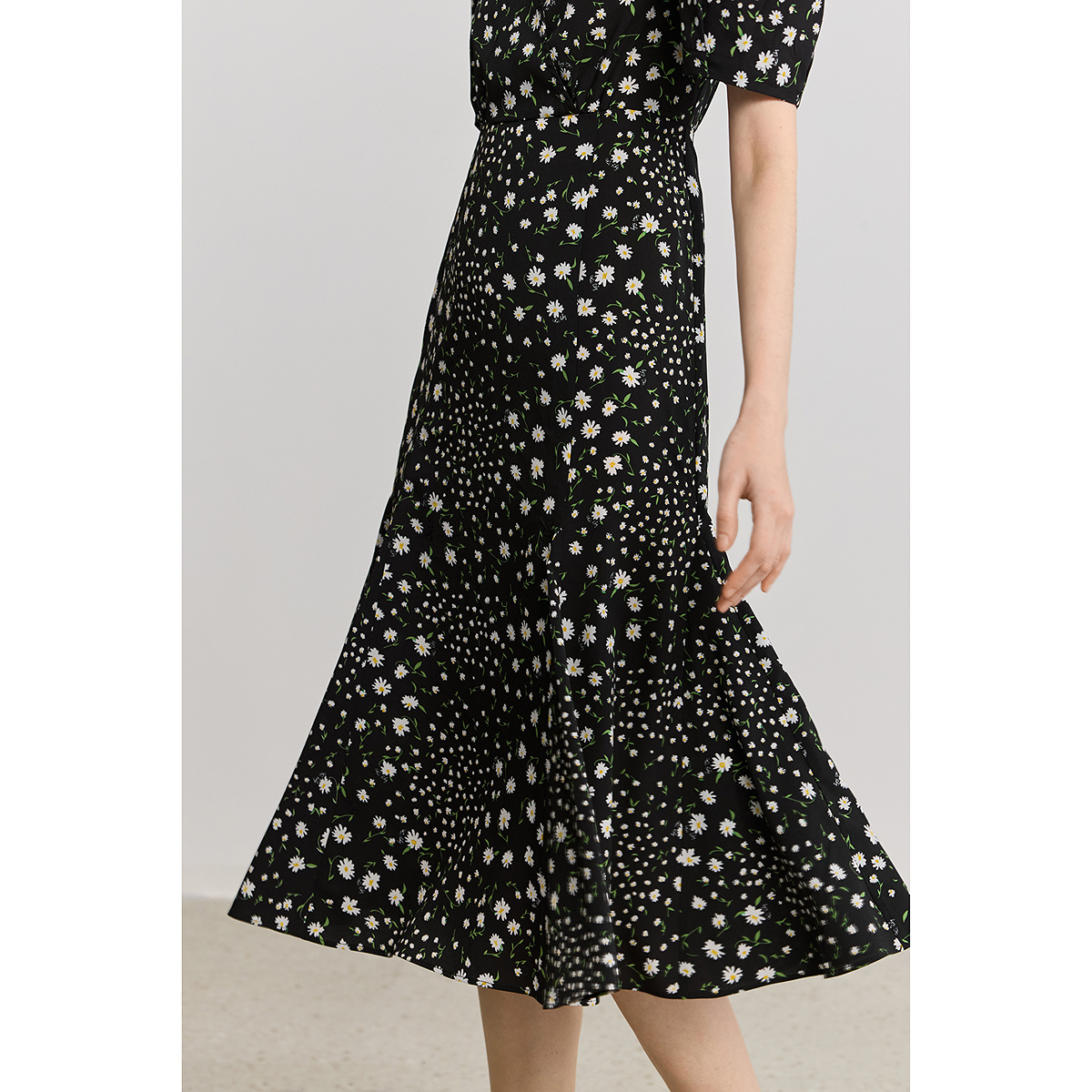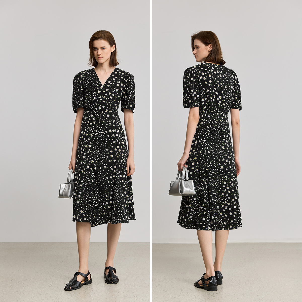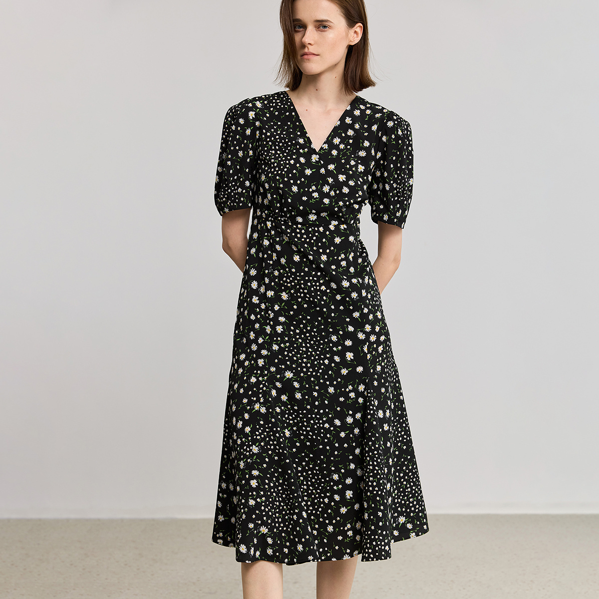 法式 LULUALWAYS 新款 25秋季 优雅浪漫温柔木耳边连衣裙 商场同款