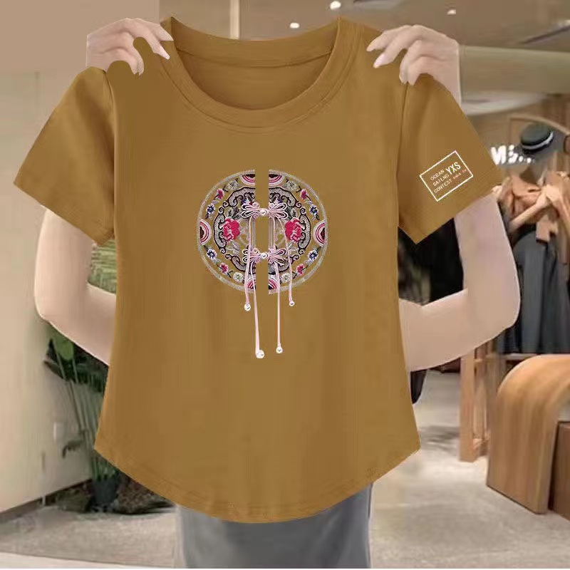潮流短袖 国风时尚 新中式 遮肉遮肚百搭爆款 上衣女 夏季 T恤女装 新款