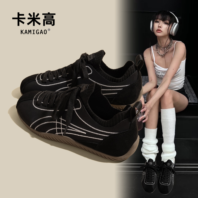 透气黑色飞织轻便厚底阿甘德训鞋 夏季 女2025新款 7cm内增高休闲鞋