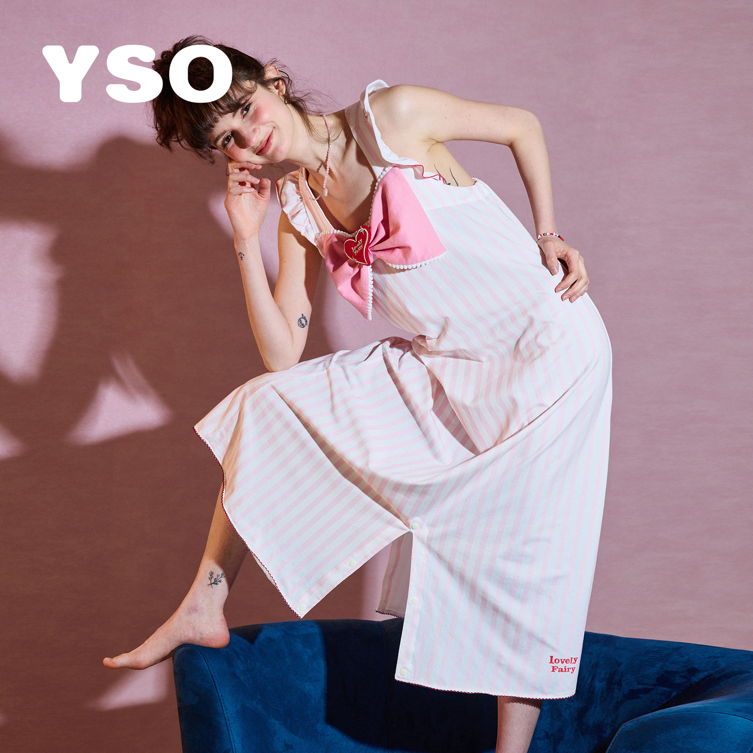 yso 睡衣女纯棉连体夏甜美蝴蝶结公主风可外穿家居服B 礼物系列