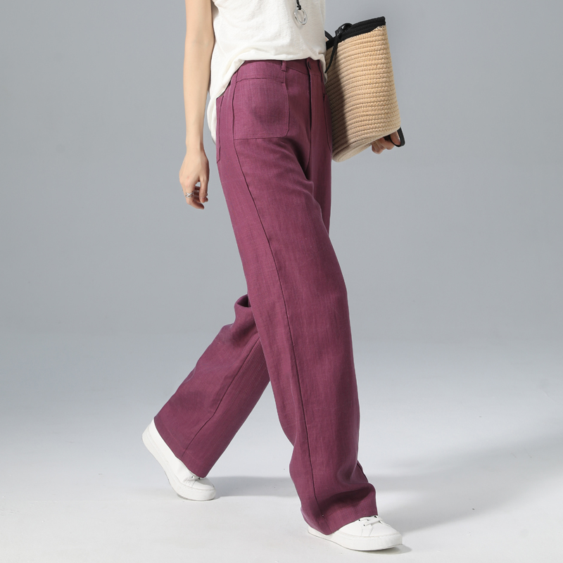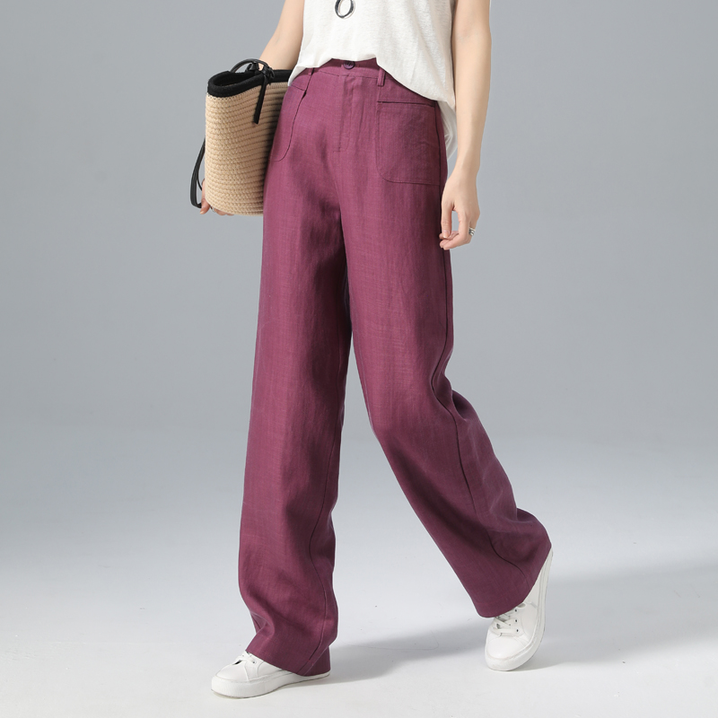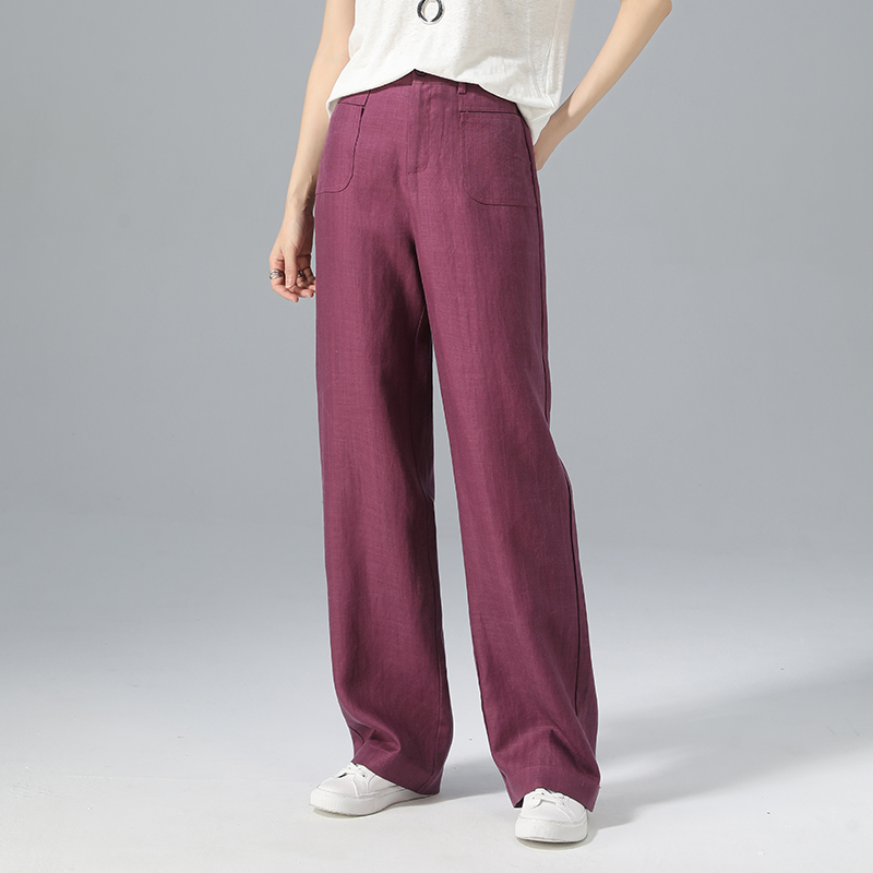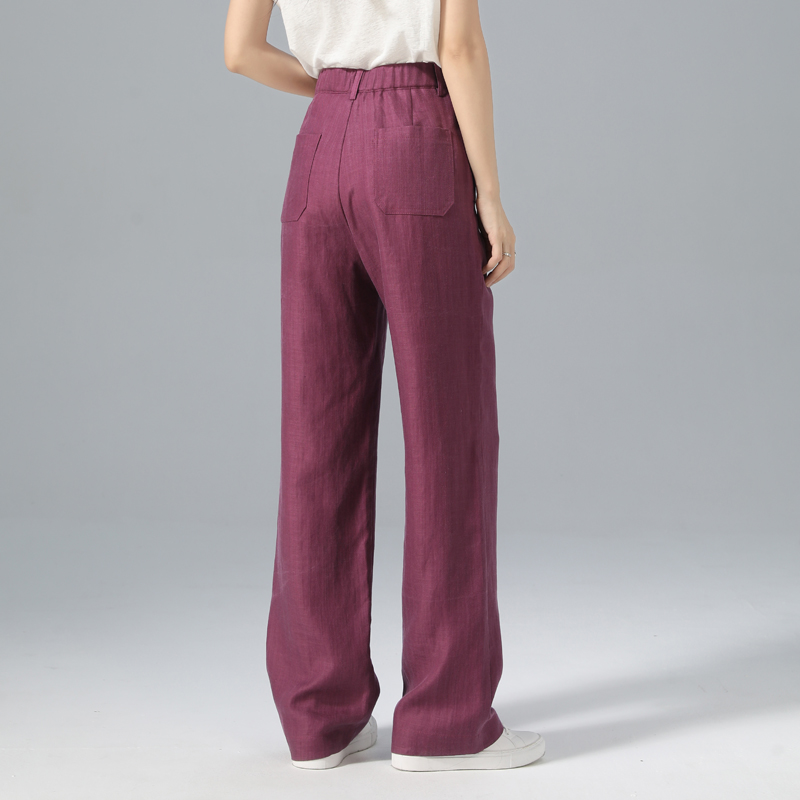 女夏季 子休闲宽松直筒裤 薄款 裤 夏 2025新款 紫色高腰天丝亚麻阔腿裤
