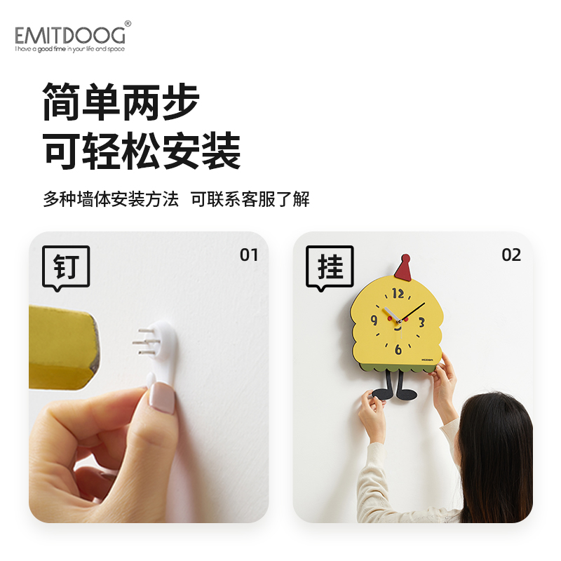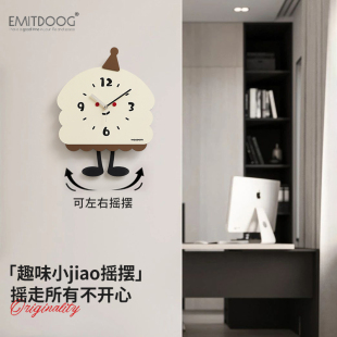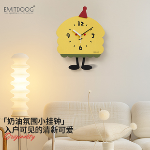 EMITDOOG免打孔奶油风创意钟表挂钟客厅2025新款 简约现代家用时钟
