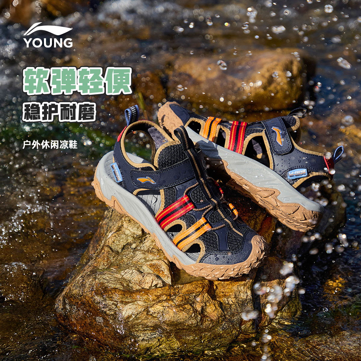 涉水运动凉鞋 小童中大童沙滩鞋 2025新款 男童鞋 夏季 李宁儿童溯溪鞋