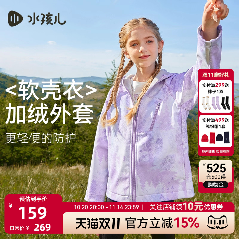 水孩儿儿童外套软壳春秋装 男童中大童女童户外登山系防风衣 新款