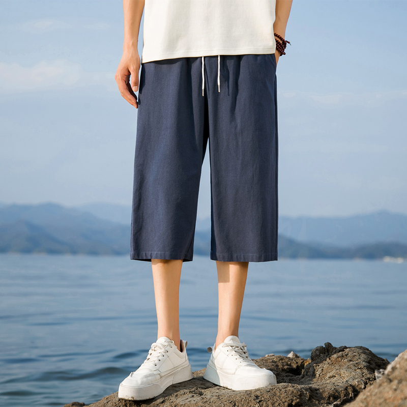 薄款 宽松亚麻短裤 沙滩裤 新中式 休闲裤 男夏季 大码 百搭潮 棉麻七分裤