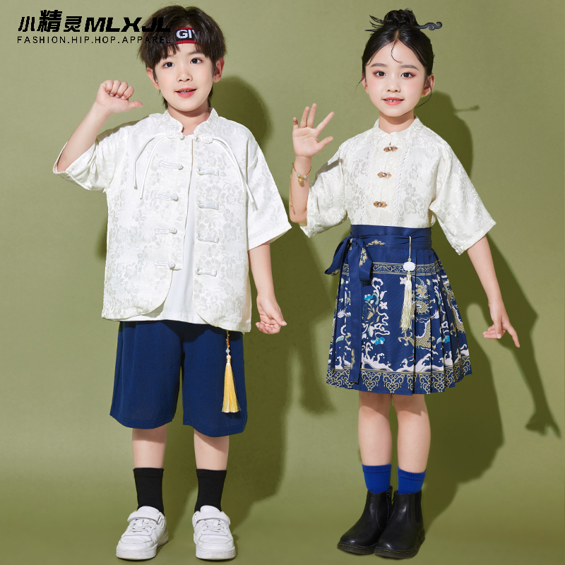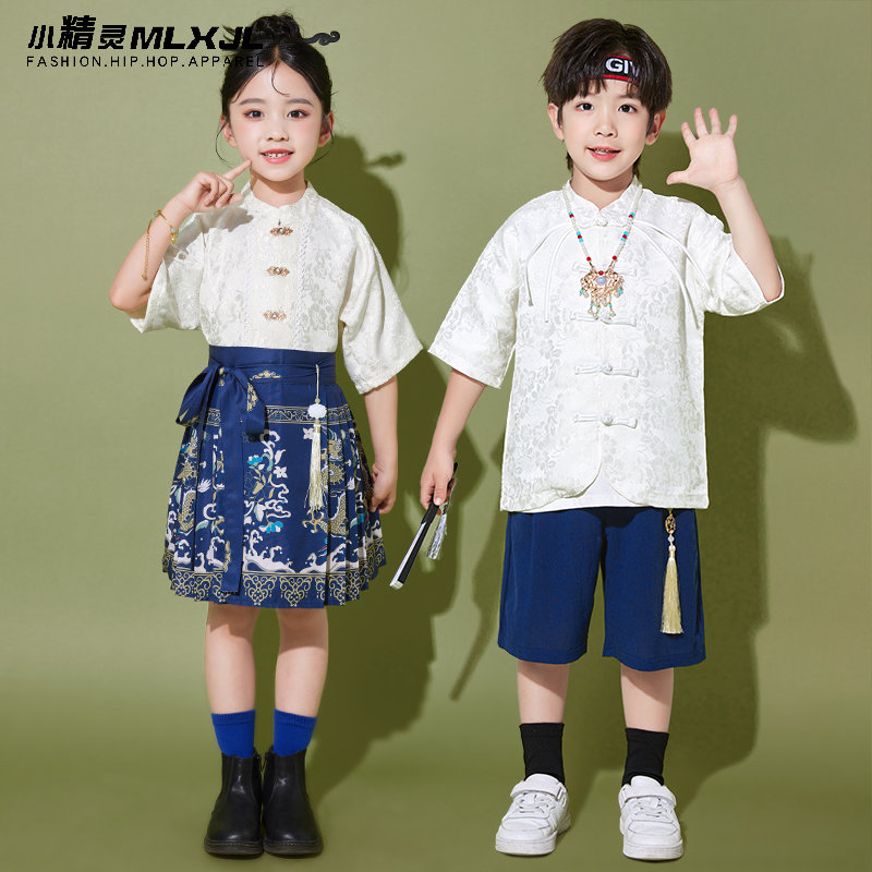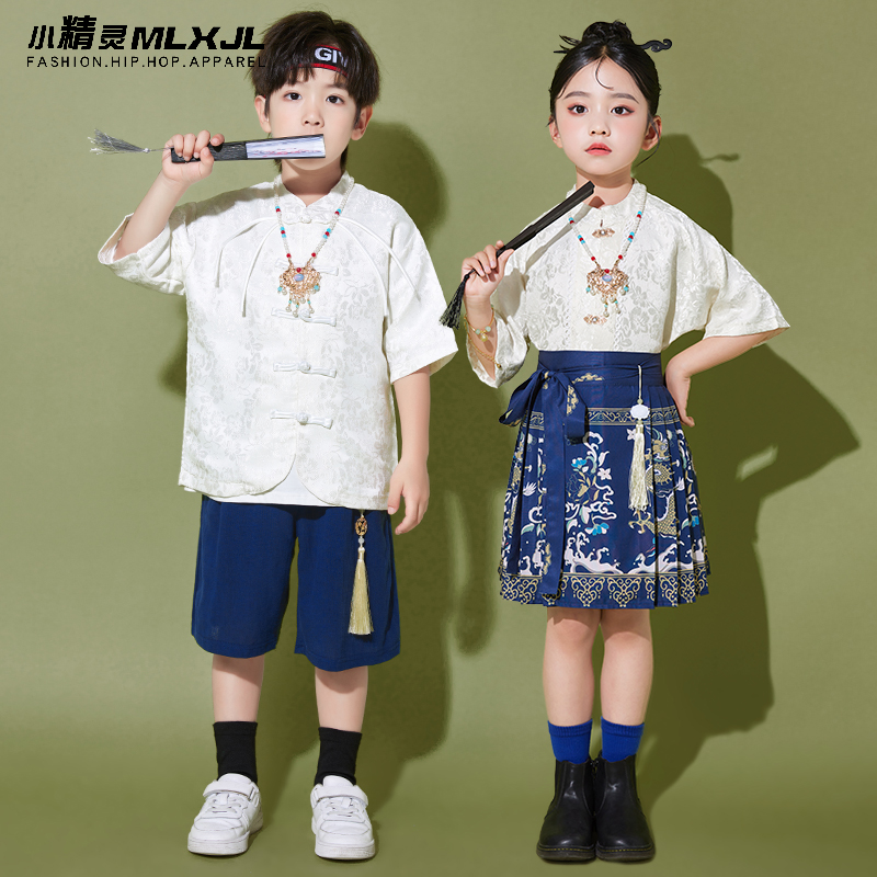 女童马面裙男童汉服套装 六一演出服小学生校服夏季 超仙中国风古装