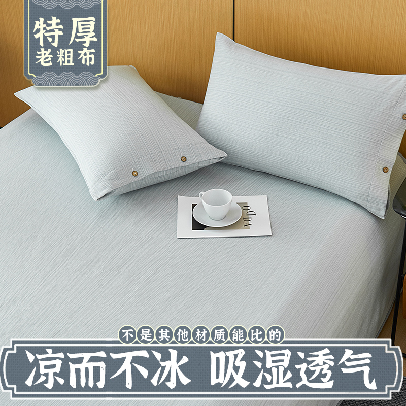 夏季 老粗布凉席三件套山东高端加厚特厚纯棉全棉棉麻亚麻单人床单