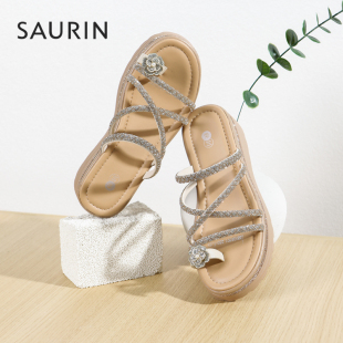 百搭水钻套趾罗马凉鞋 时尚 25BN28301 新款 索兰坡跟凉拖女2025夏季