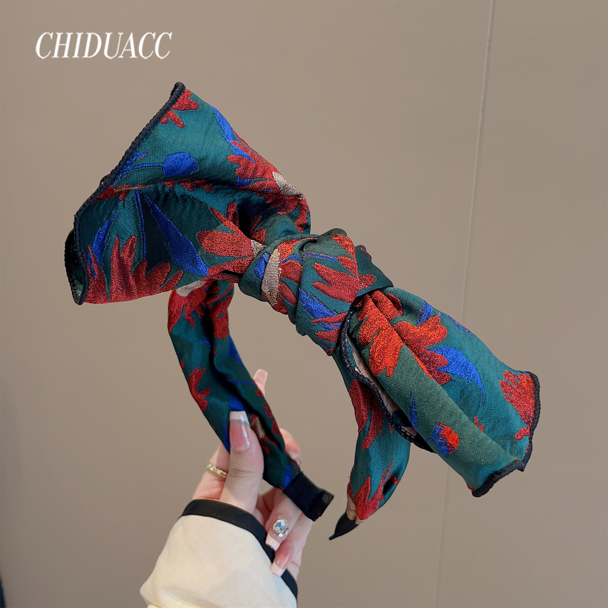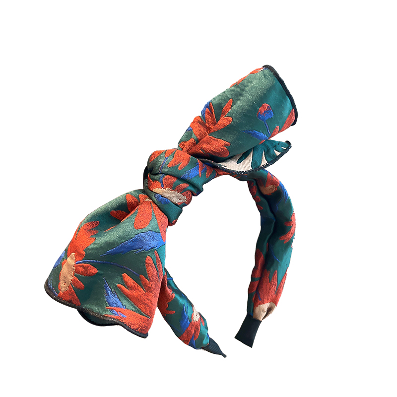新款 高级感印花布艺大蝴蝶结韩国复古简约宽发箍发饰头箍头饰韩版