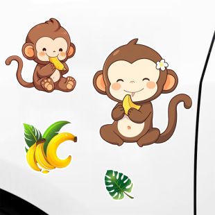 车贴划痕遮挡防水装 猴子创意个性 饰电动车贴纸 卡通吃香蕉 YJZT