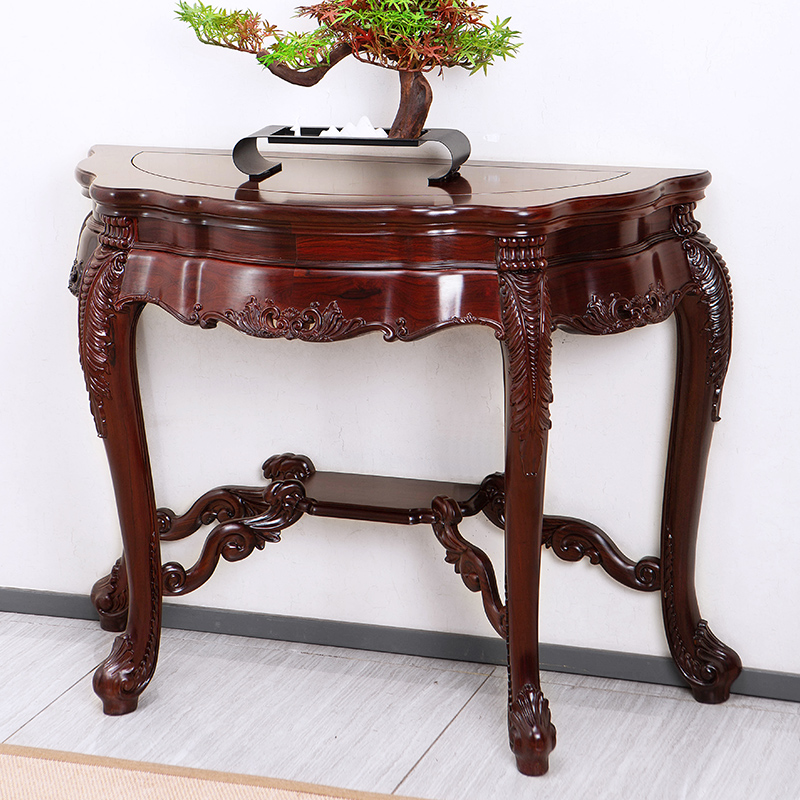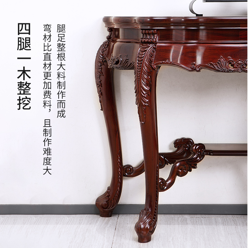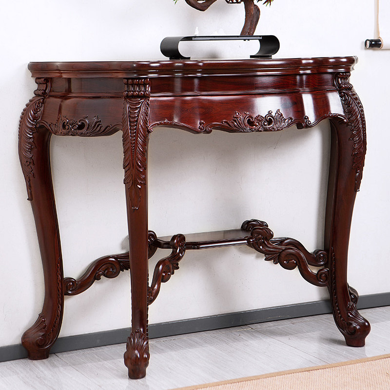 艺浦古典仿古红木家具巴里黄檀欧式 半圆桌供桌靠墙酸枝玄关桌家用