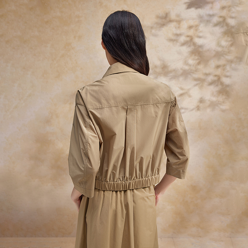 小个子复古上衣BDR2WD0912 七分袖 播翻领短外套女商场同款 2024新款