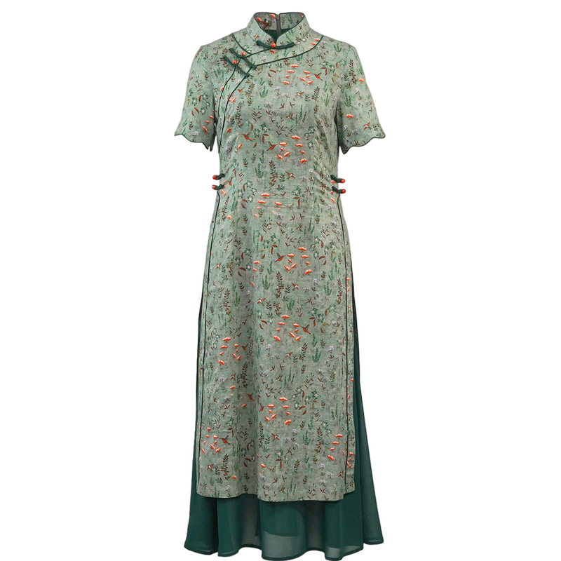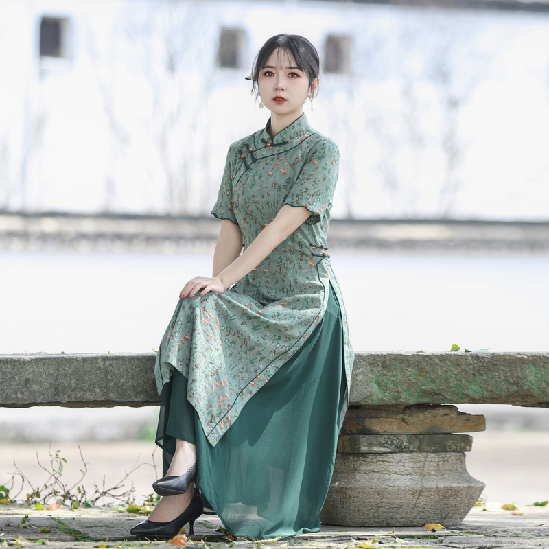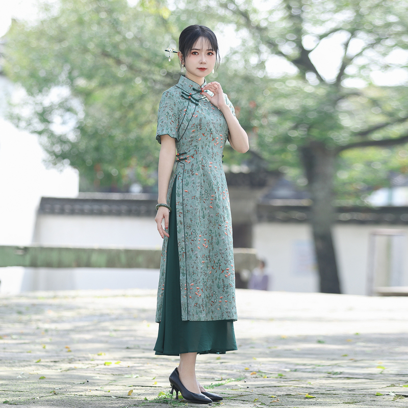 如意风奥黛新中式 改良旗袍女收腰显瘦日常中国风高端连衣裙23R159