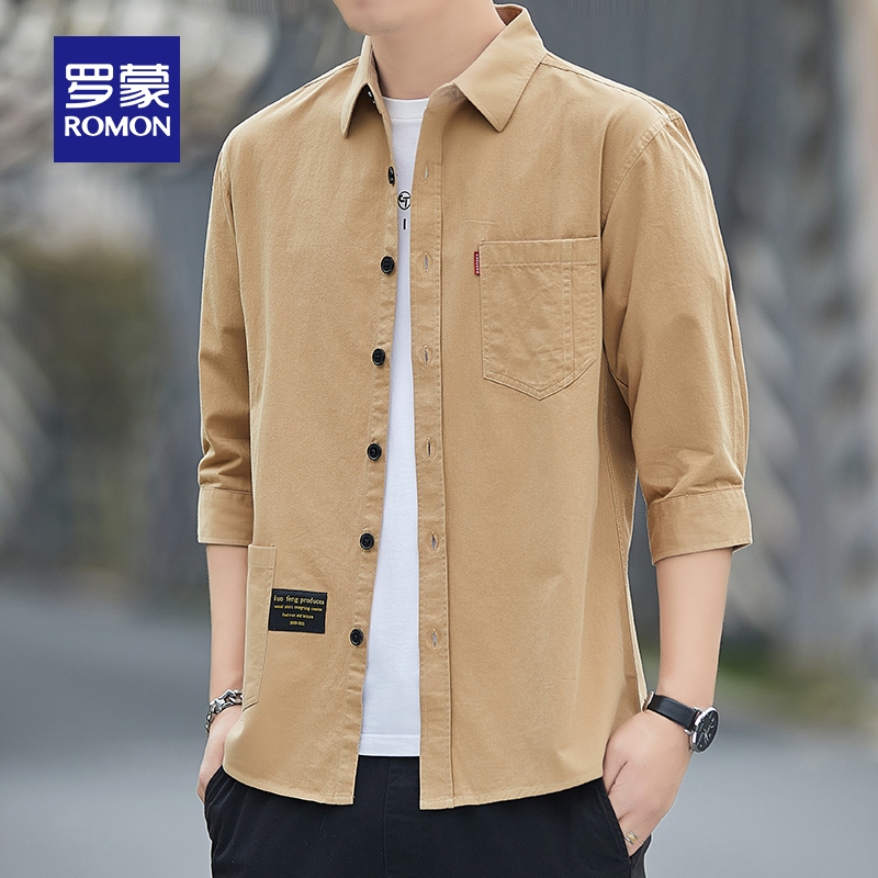 七分袖 罗蒙男士 衬衫 2025秋季 户外百搭商务休闲衬衣男 新款 纯棉