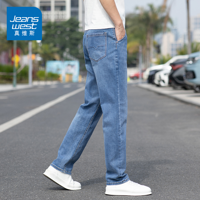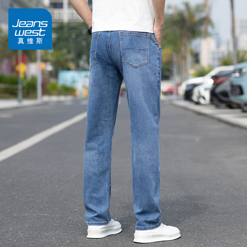 男士 长裤 直筒宽松弹力休闲男裤 新款 子秋冬款 KZ真维斯浅蓝色牛仔裤
