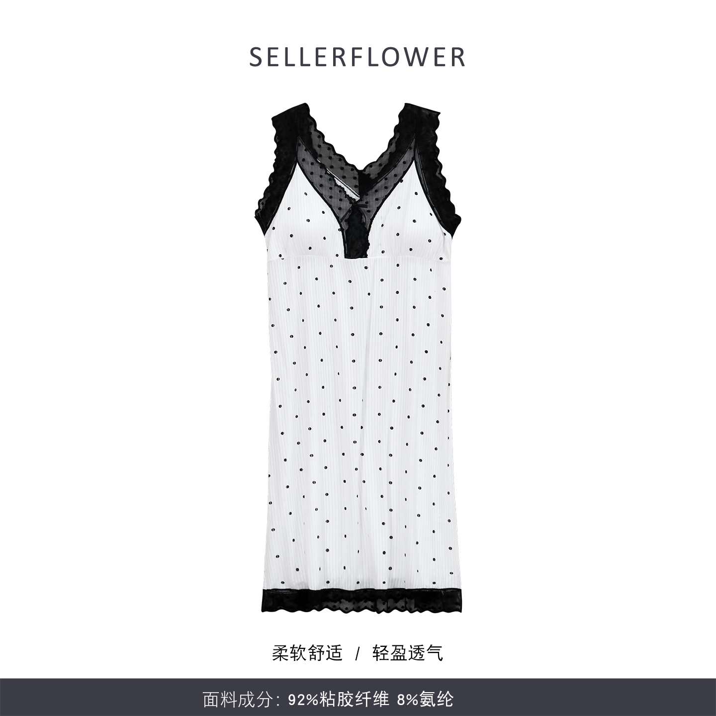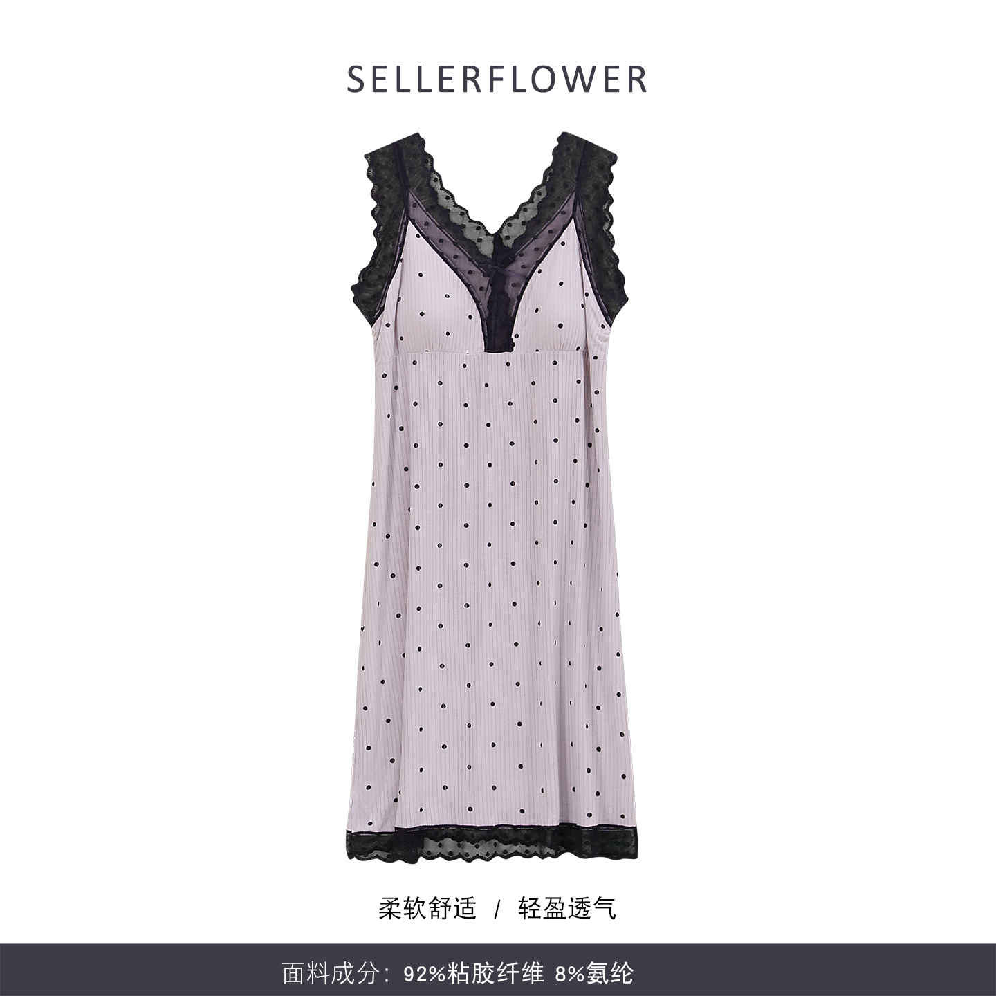 蕉内棉棉300Sleep女款 女士吊带睡裙 睡衣带杯带胸垫莫代尔冰丝短袖
