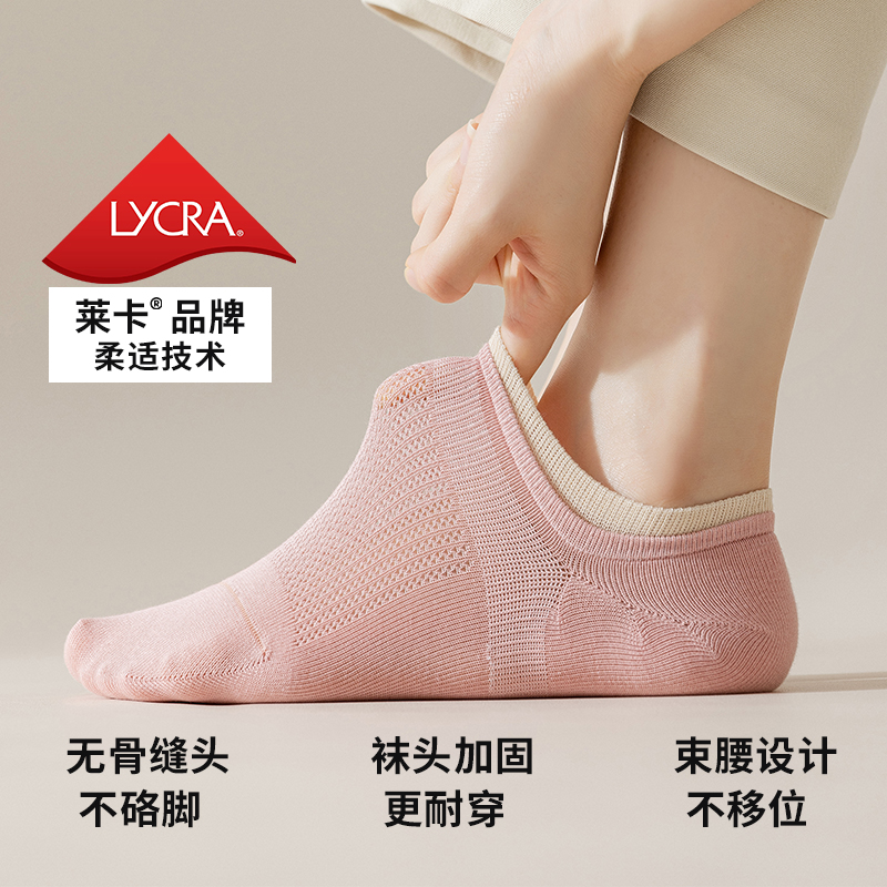 纽奈船袜女夏季 网眼纯棉防臭不掉跟隐形浅口防滑袜子女短袜 薄款