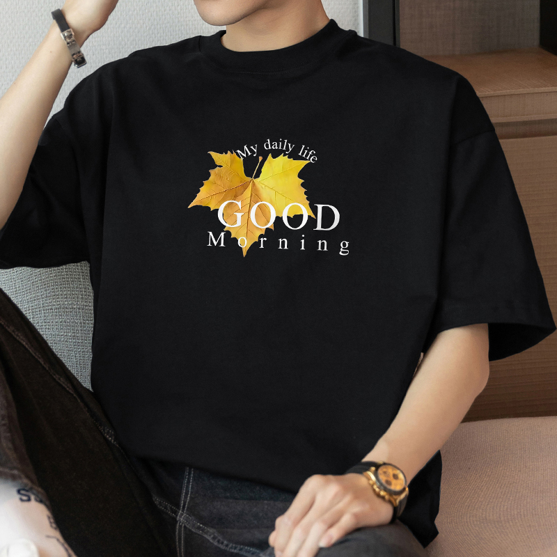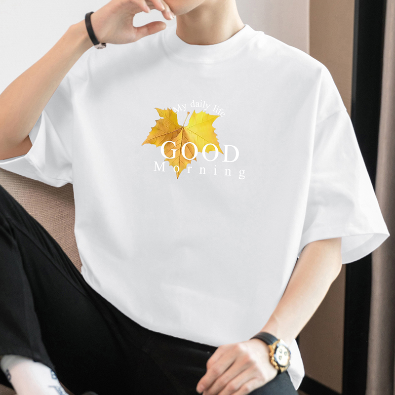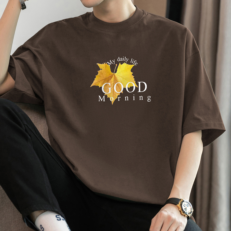 潮流枫叶印花圆领上衣服半袖 夏季 体恤 纯棉t恤男短袖 260g重磅美式