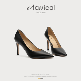 女 侧空红底裸色浅口气质单鞋 2025新款 细跟尖头漆皮名媛高跟鞋