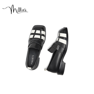 百搭英伦风方头粗跟真皮女鞋 MILLIE 2025年秋季 妙丽熊猫乐福鞋