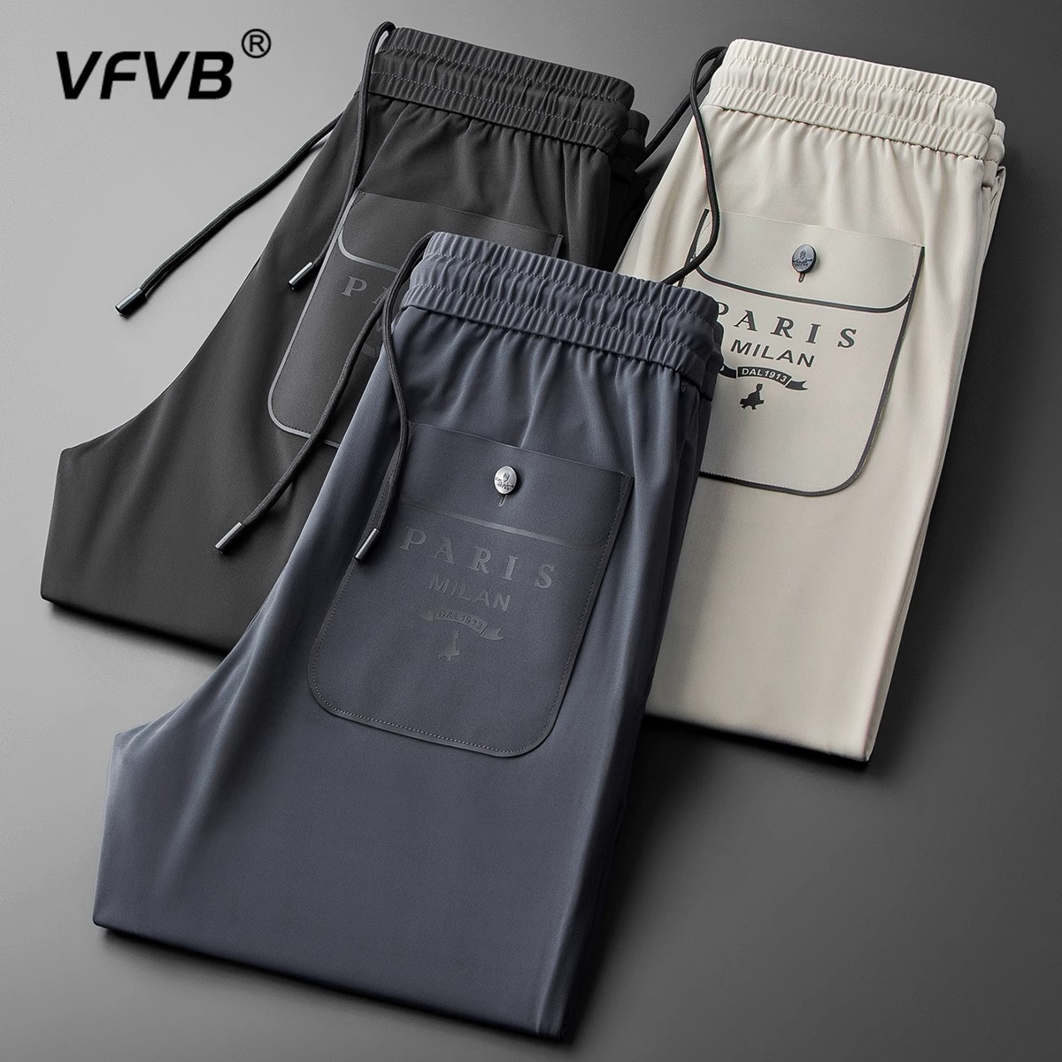 轻奢速干抗皱冰丝卫裤 新款 无痕压胶印花运动束脚 男2024夏季 休闲裤