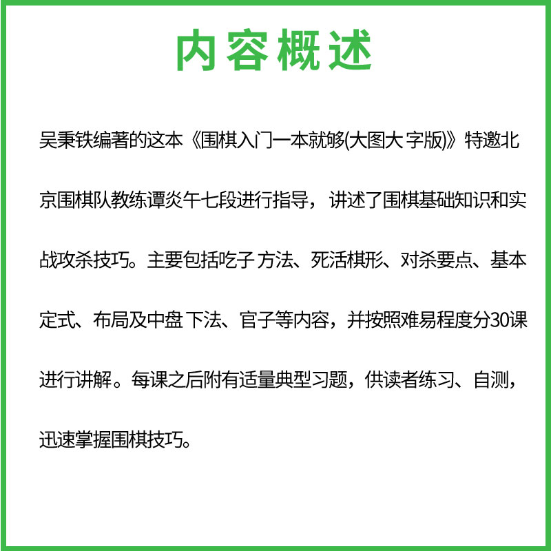 吴秉铁 化学工业出版 社 正版 青少年儿童成人围棋棋谱 大图大字版 围棋实战技巧 青少年儿童围棋入门教材书籍 围棋入门一本就够
