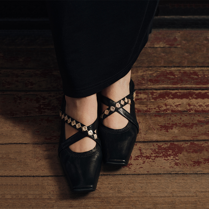 新款 春夏季 方头交叉带铆钉水钻小皮鞋 设计师款 单鞋 Murmure