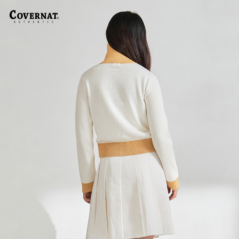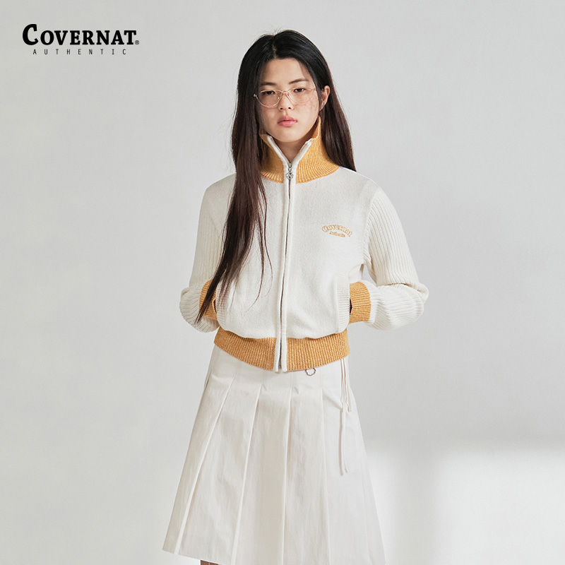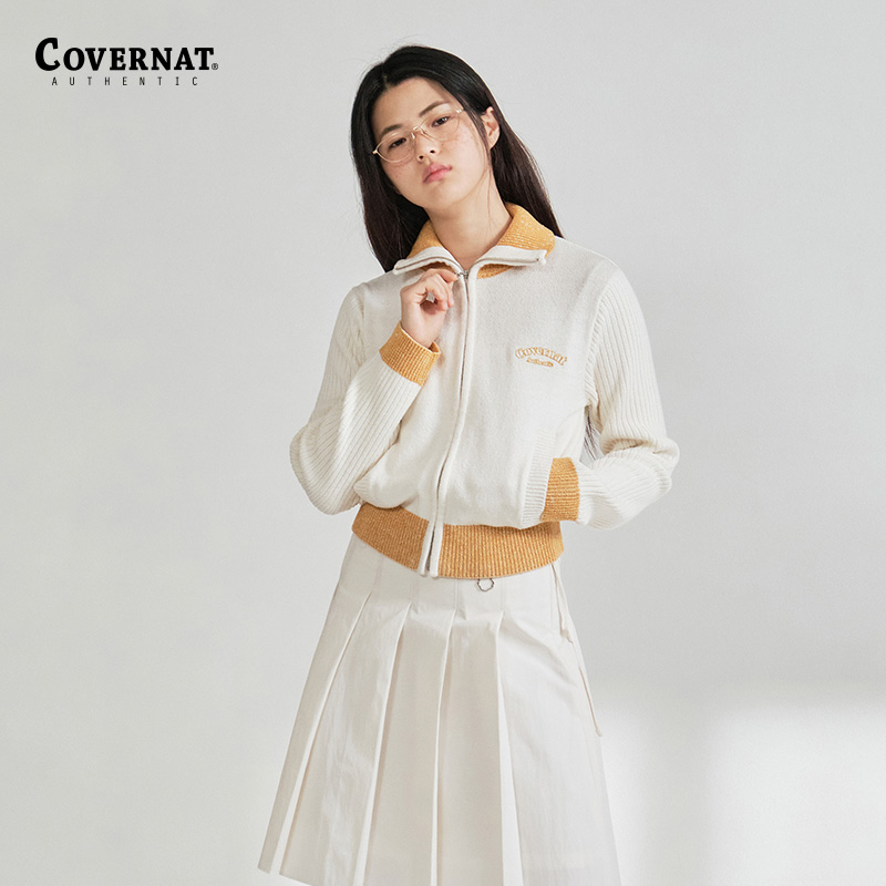 运动风短款 covernat韩国潮牌春季 休闲拉链针织衫 女士高领长袖 开衫