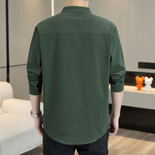 长袖 棉麻衬衣休闲男装 衬衫 新款 透气立领亚麻衣服 2025年春秋季 男士