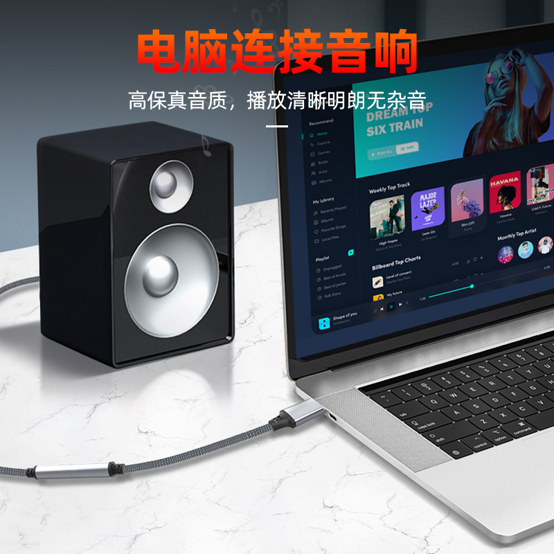 萨科雷耳机音箱转接线USB转3.5mm音频线台式 主机笔记本电脑USB转换3.5mm母aux音响发烧hifi接口